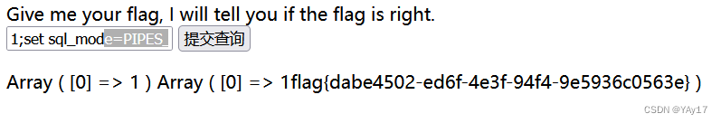 #||操作符:如果前面为真,则后面不执行,所以我们在传入1的时候,语句就变成了select 1 from Flag;