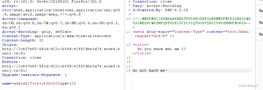 同样还是先使用万能密码,admin' or 1=1#,password随便输入了。发现了报错,错误提示是1=1#右边 那就是or被过滤了,尝试双写一下。