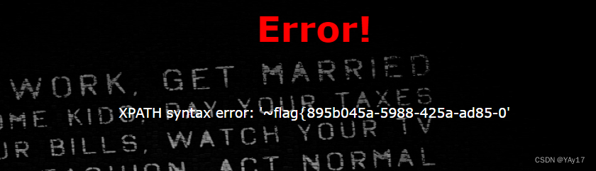 哎这里输入什么都被抓住。看了一下大佬的wp,使用报错注入。其中过滤了空格和=号,可以使用()代替空格,like代替=号,用’^'来连接函数,形成异或。