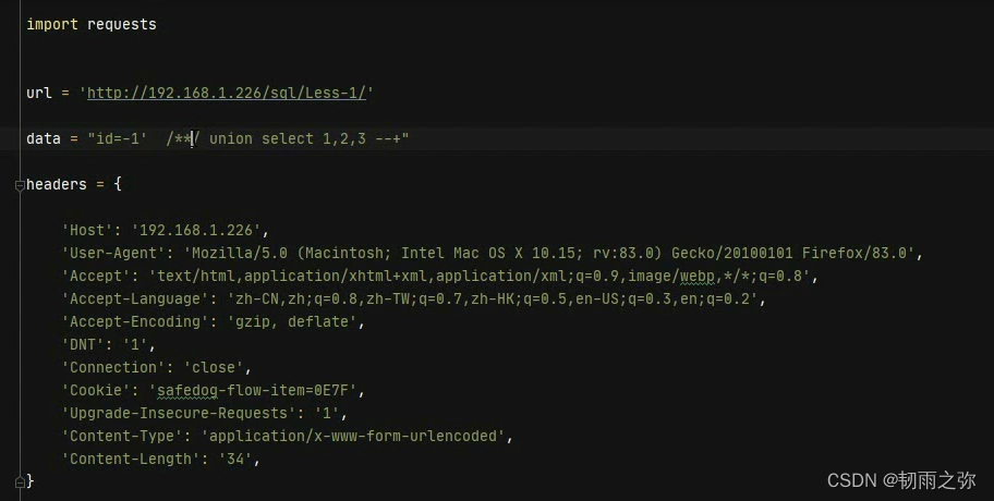 首先使用python脚本探测安全狗的数据检测的最大位数: