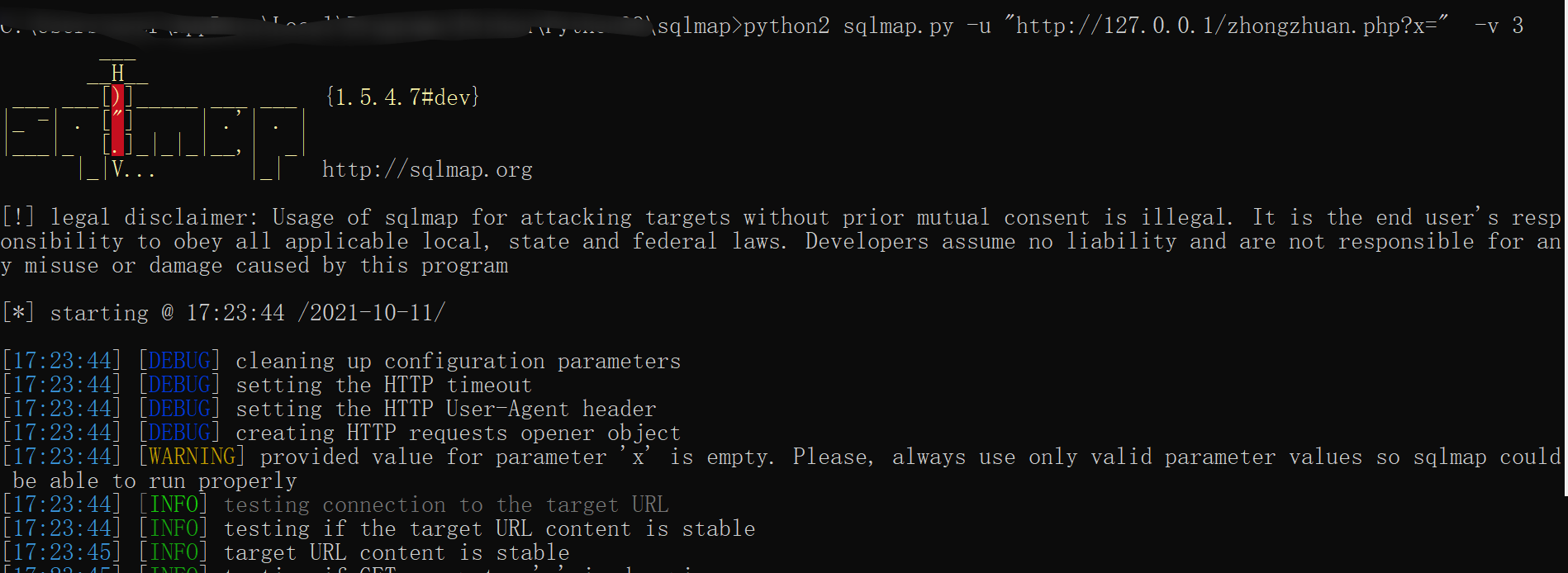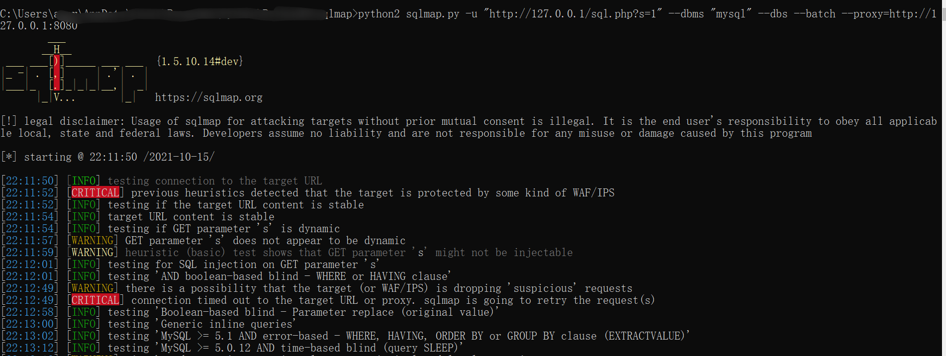 [!] legal disclaimer: Usage of sqlmap for attacking targets without prior mutual consent is illegal. It is the end user's responsibility to obey all applicable local, state and federal laws. Developers assume no liability and are not responsible for any misuse or damage caused by this program
