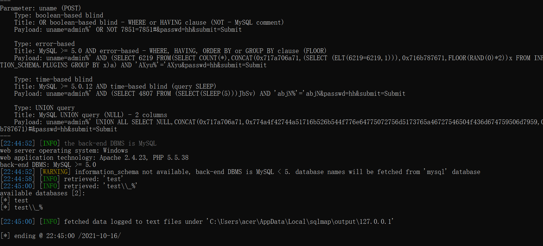 在使用sqlmap跑的时候最好先本地测试一下,经过了20多分钟的扫描终于算是出东西了