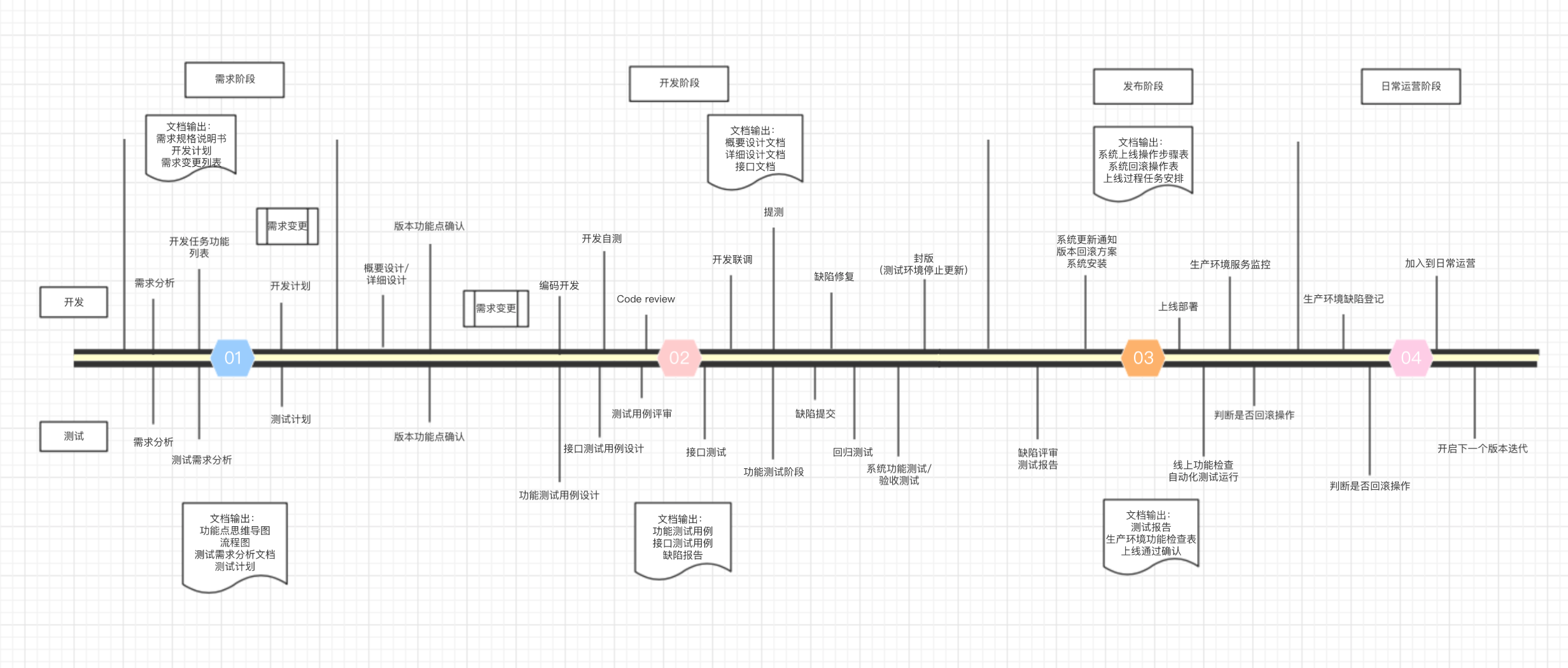 根据全程软件测试的时间轴线图,我们可以发现测试活动贯穿软件开发的整个生命周期,各个阶段测试活动内容如下: