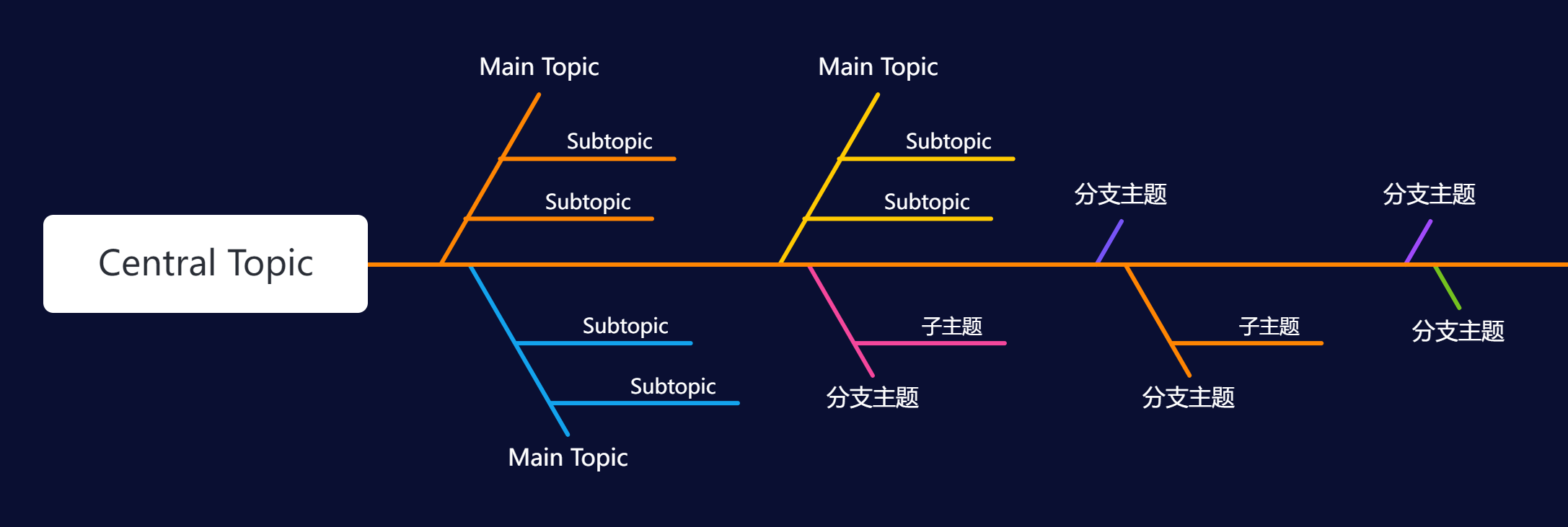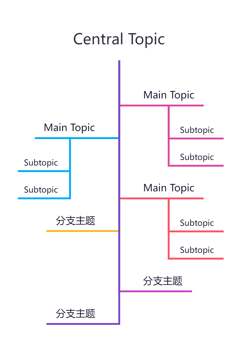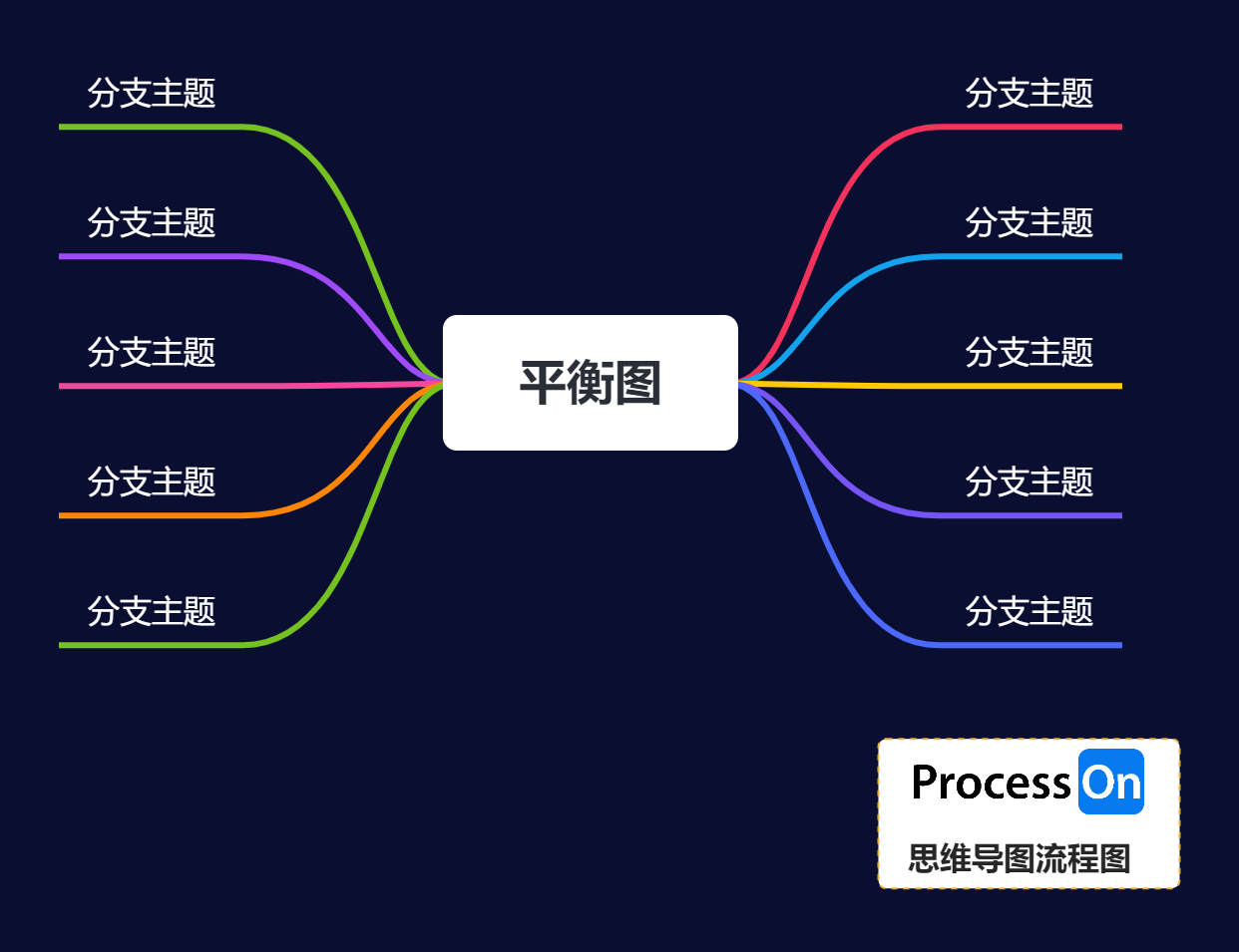 平衡图是特殊的思维导图结构,区别在于平衡图的主题是按从右到左的顺序均衡分布的,两端的主题分布会达到一种对称的状态。
