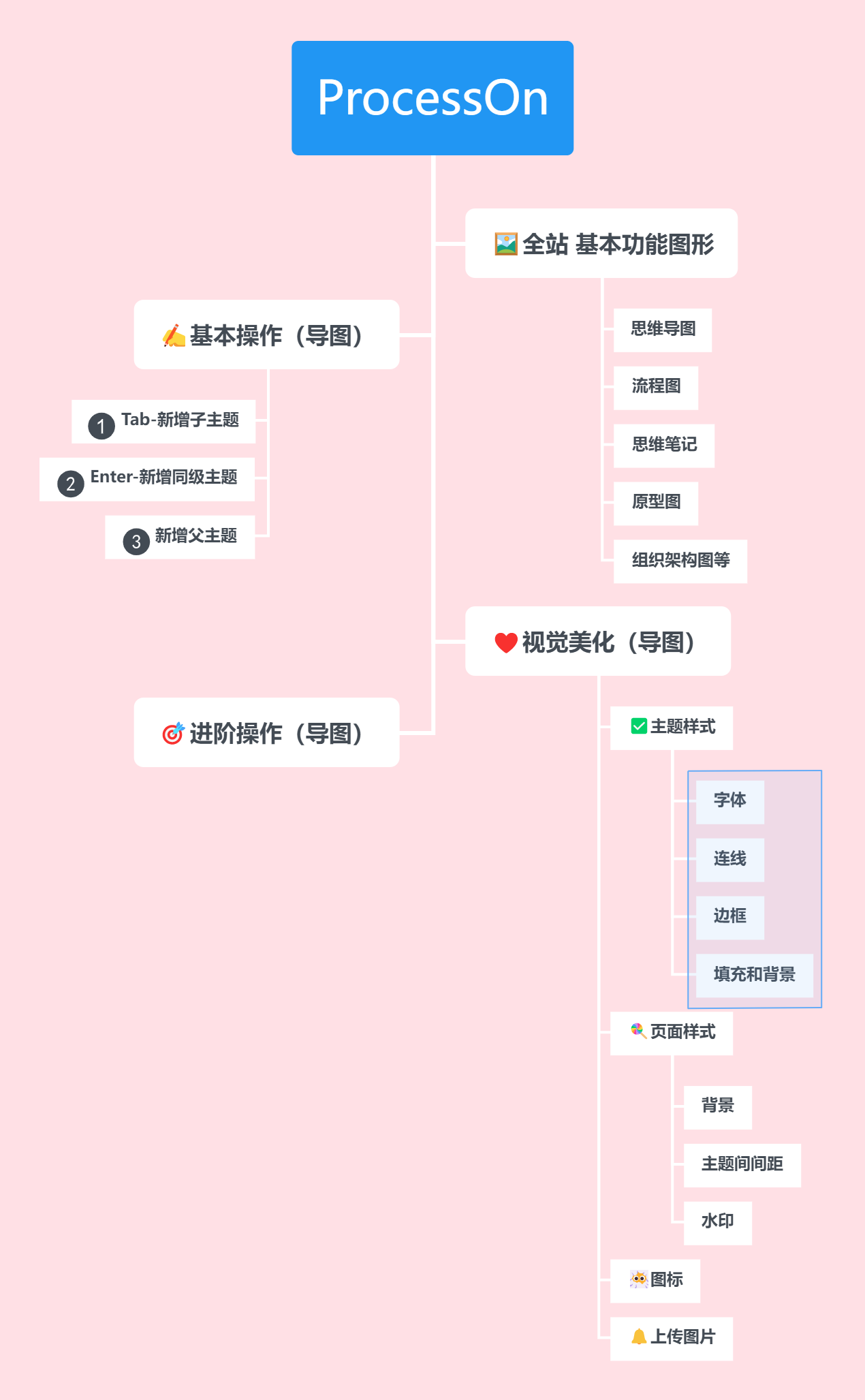 思维导图它的结构有很多种,可以用在不同的场合。我们今天就以ProcessOn思维导图为例,给大家介绍导图的结构!