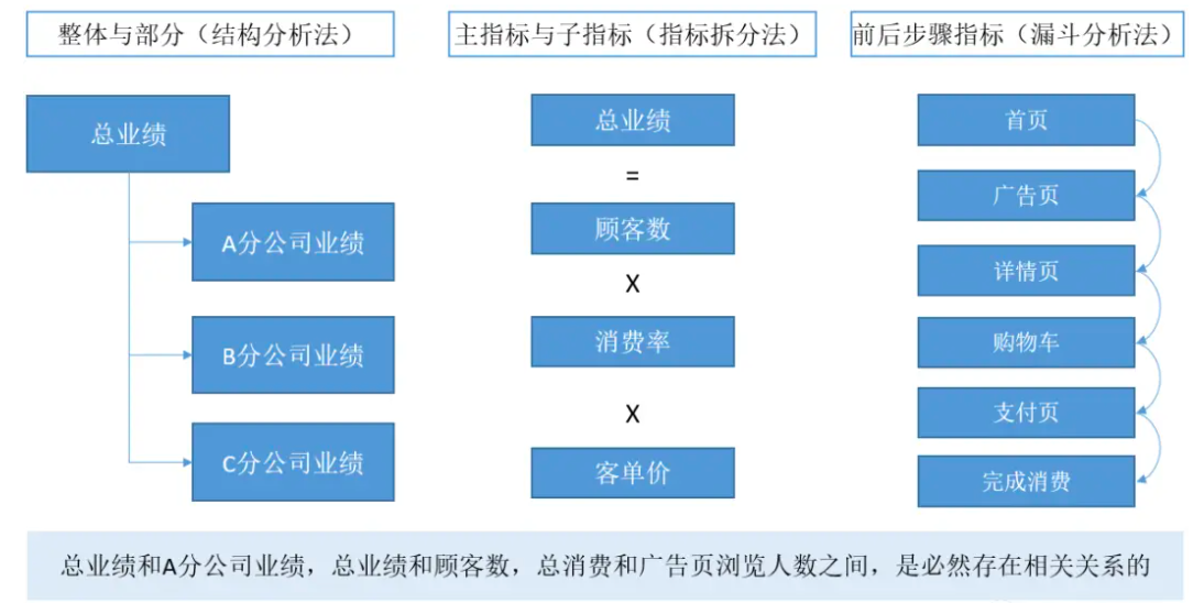- 客户数太少了,所以整体业绩不好(主指标、子指标)