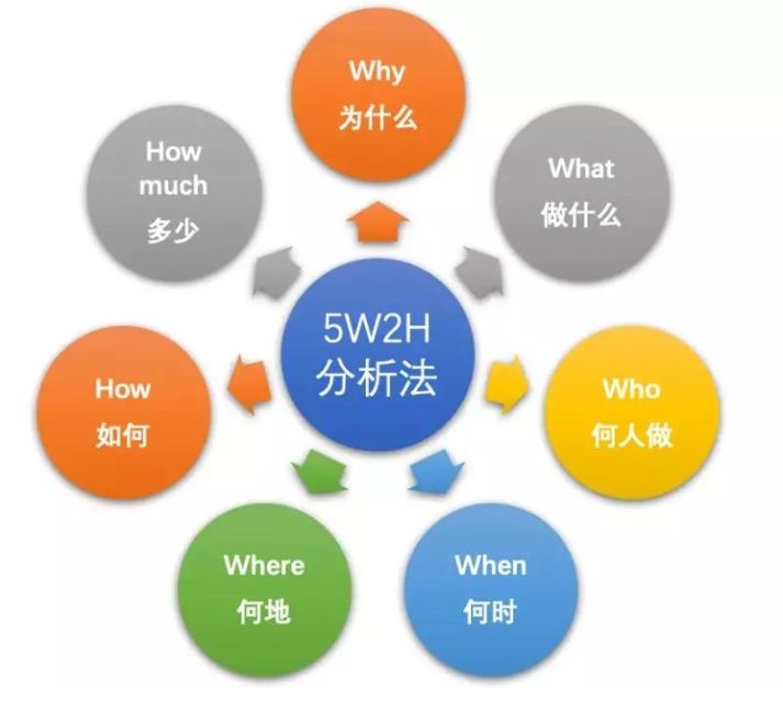 就是用5个W和2个H开头的英文单词来思考问题,很好理解,适用于解决简单的问题,而面对复杂的商业问题时就需要其他的方法辅助了。