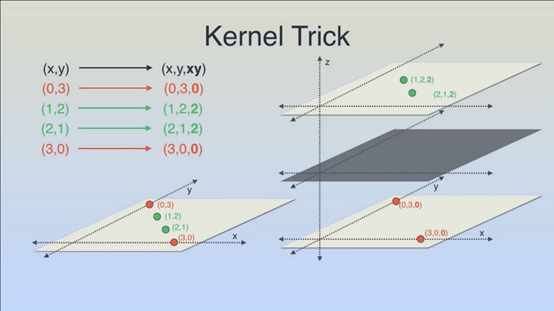 如上表所示,可以清楚地看到xy公式用数值0和2将红色和绿色的数据点分离。
