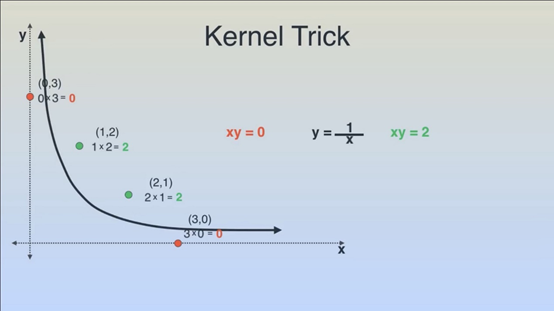 在线性空间中,我们知道解在xy=0和xy=2之间,即xy=1,y=1/x,正是上图所示的线形。