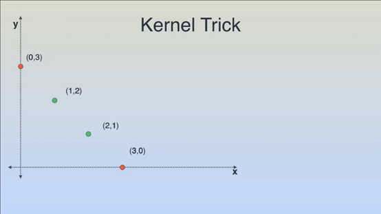 核技巧实际上是在一个平面上给出一个解,而这个解本来并不存在于问题中。如果可以得到如下这组数据,你就会发现,这些数据不能用直线进行线性分类。