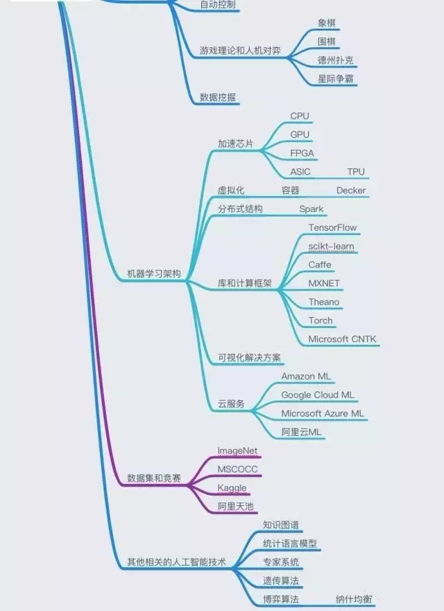 二阶逻辑,自动定理证明,SAT问题,CSP问题,描述逻辑,本体论,RDF/OWL,答题规划,概念图,Cyc,概念修正,因果分析,过程规则,推理解释,前向链推理,反向链推理,逻辑归结,模糊推理,语义网,多agent系统,竞争神经网络,自组织特征映射,贝叶斯神经网络,期望最大化,图模型,分布检验,MCMC采样,Gibbs采样,隐马尔可夫模型HMM,Hopfield网络,放射基网络,规则学习,句法归纳,遗传算法,进化程序,强化学习,迁移学习、表示学习、集成学习、细胞自动机、人工生命、卡尔曼滤波、傅里叶变换、马尔科夫决策过程MCP、卷积神经网络、循环神经网络、提升方法、排序学习、奥卡姆剃刀、Haskell