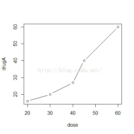 > plot(dose, drugA, type="b")