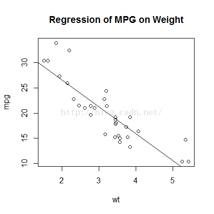 > title("Regression of MPG on Weight")
