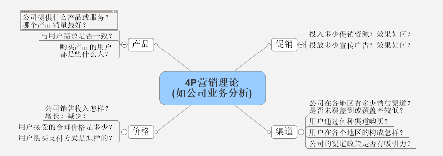 4P分析理论主要用于公司整体经营情况分析;