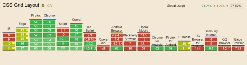 而grid,网格布局号称是下一代的布局方式,但是浏览器兼容方面就没有flex那么好。但是这个也是有必要了解的。毕竟已经被W3C纳入标准了。兼容性也是进一步增强。