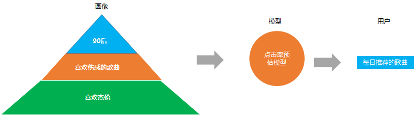 比如根据你是90后, 喜欢伤感的, 又喜欢杰伦, 就会推荐类似的歌曲给你, 这些就是基于用户画像推荐
