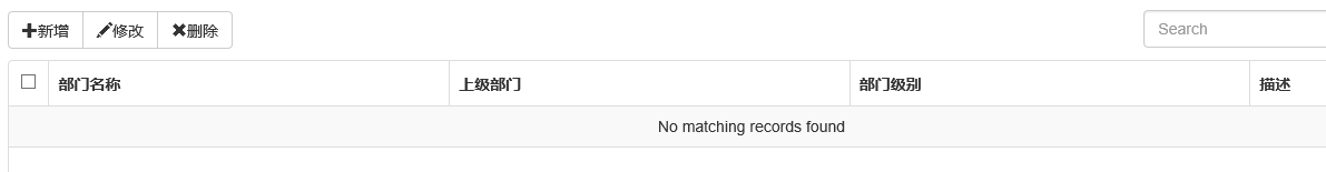 引入需要的文件之后,我们最重要的就是定义一个空的table,如上的 <table id="tb_departments"></table> 。当然Bootstrap table还提供了一种简介的用法,直接在table标签里面定义类似“data-...”等相关属性,就不用再js里面注册了,但博主觉得这种用法虽然简单,但不太灵活,遇到父子表等这些高级用法的时候就不太好处理了,所以咱们还是统一使用在js里面初始化的方式来使用table组件。