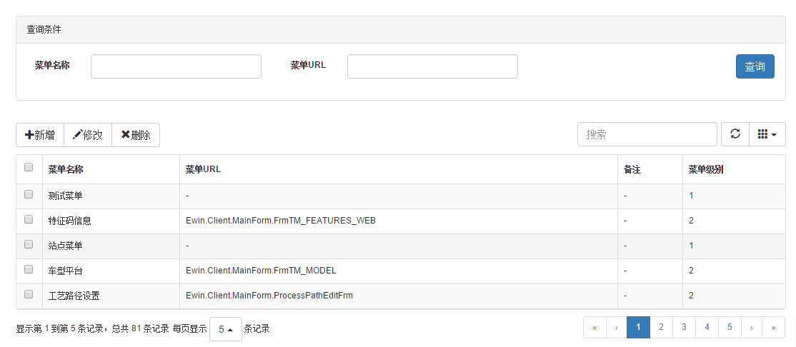 2、第二个问题就是关于bootstrap页面样式的问题,我们使用过bootstrap的朋友应该知道,它里面所有的图标都是通过class = "glyphicon glyphicon-plus"这种方式去写的。博主按要求这样做了,可是新增、修改、删除前面的图标怎么都出不来。如下: