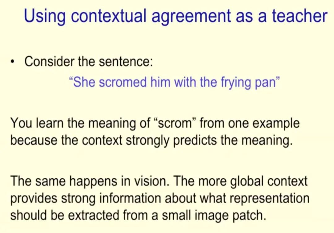 Becker 和 Hinton 使用的优化互信息方法存在一定缺陷,因此后来 Pacannaro 和 Hinton 用一个判别式目标替换了它,在该目标中一个向量表征必须在多个向量表征中选择对应的一个。