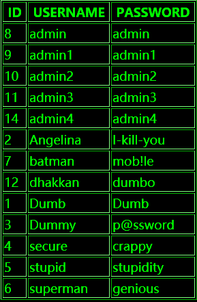 根据前面所学,可以得到数据库名,表名,表中内容。
