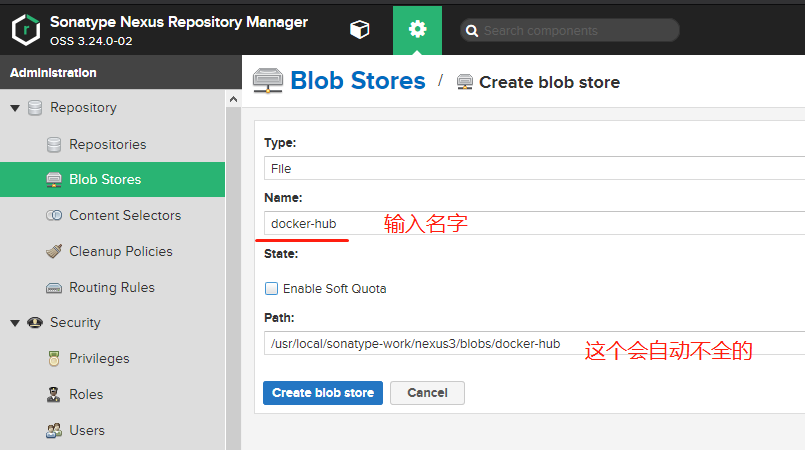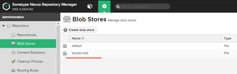 创建仓库之前,需要先创建该类型的 blob,用于存放改类型的仓库。