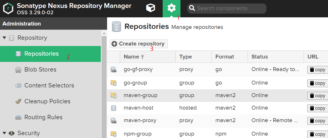- proxy : 提供代理其他仓库的类型,如 docker 中央仓库。