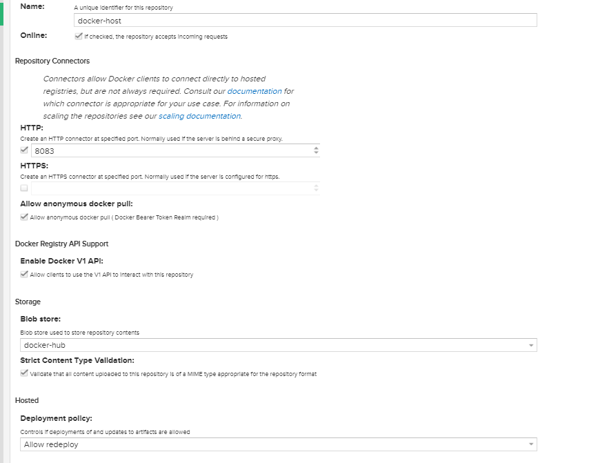 - 连接器允许docker客户端直接连接到docker仓库,并实现一些请求操作,如docker pull, docker push, API查询等。但这个连接器并不是一定需要配置的,尤其是我们后面会用group类型的docker仓库来聚合它。