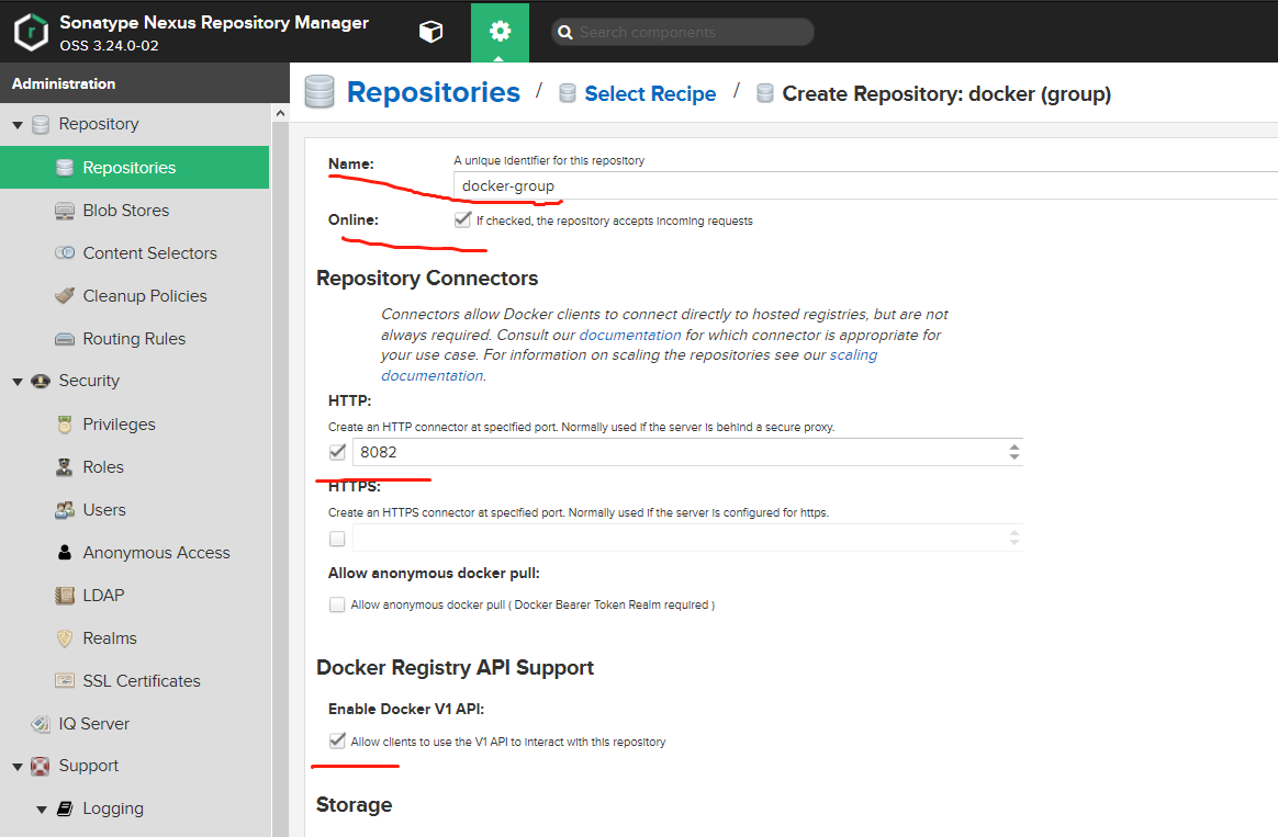 Online: 勾选。这个开关可以设置这个Docker repo是在线还是离线。