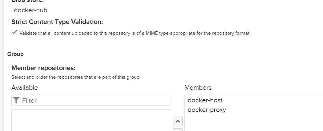 Blob store:我们下拉选择前面创建好的专用blob:docker-hub。