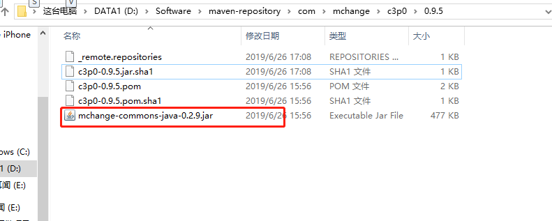 所以就到本地的maven仓库对应的位置“D:Softwaremaven-repositorycommchangec3p0 .9.5”去一看究竟,结果如图