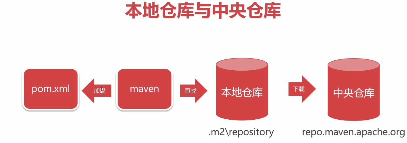 上述过程:假设一个工程中使用了maven,maven在项目启动的时候,会对pom.xml进行加载,分析里面有哪些dependency依赖,然后其便会在本地仓库(本机的某一个目录中)中去查找这些依赖文件是否存在,这些依赖文件就是通常使用的jar包,本地仓库一般是.m2repository目录,如果在maven在查找本地仓库的时候,发现某一个jar在本地仓库中没有,maven会自动的向中央仓库(Apache的maven仓库)发起下载的请求,将中央仓库中的jar包下载到本地仓库,之后再由maven去加载刚下载的文件,于是在项目列表中就会有这个依赖了。