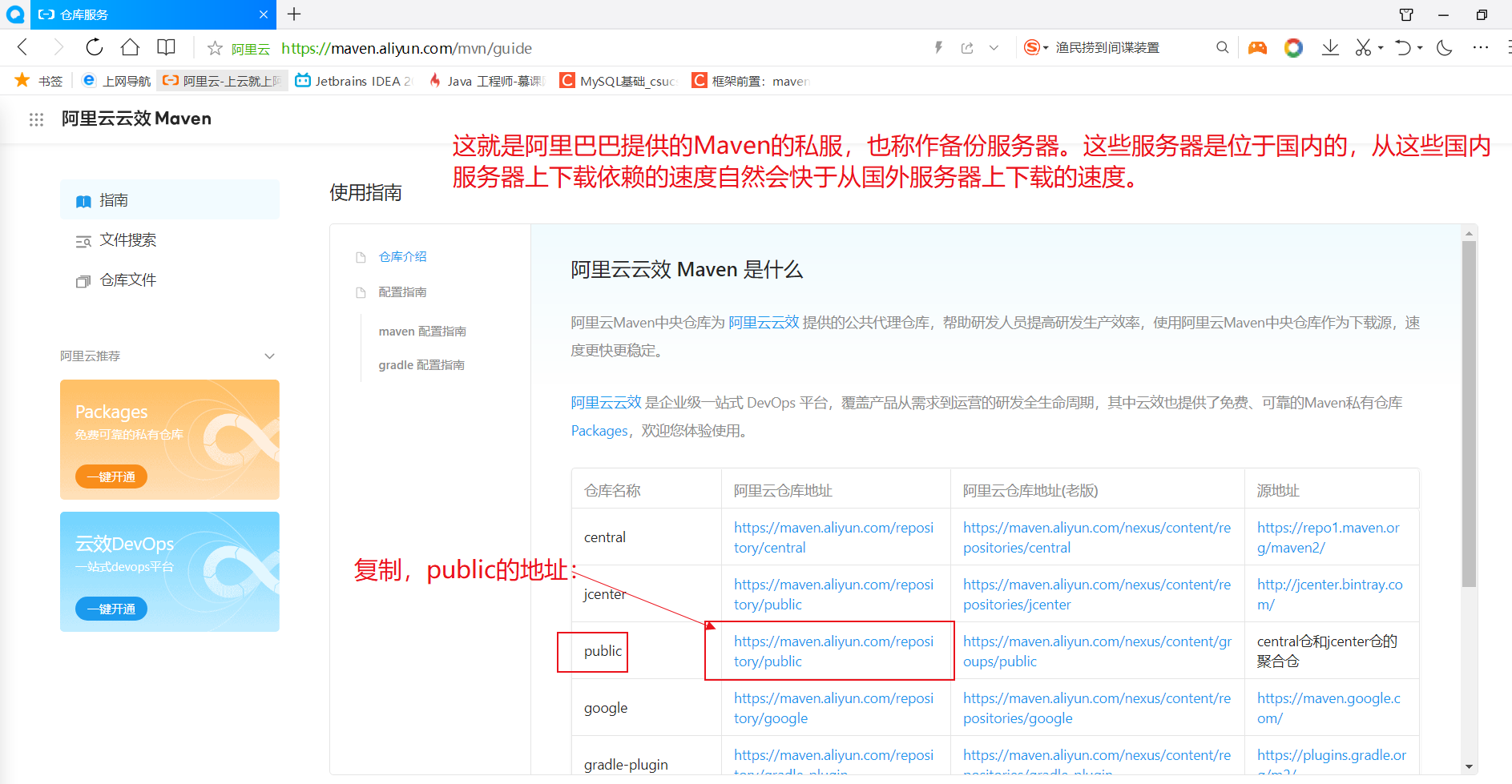 阿里巴巴Maven私服地址:http://maven.aliyun.com: