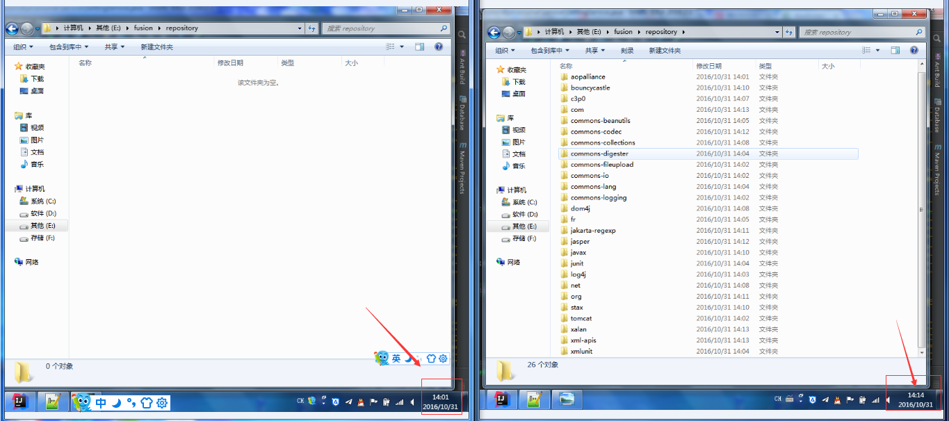 最后,是项目原来仓库和新下载下来的仓库的对比图: