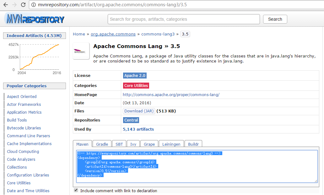 在这个网站,搜索pom.xml文件里面的依赖关系。http://mvnrepository.com