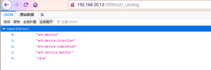 push成功之后,查看本地/opt/registry目录下已经有了刚推送上来的registry镜像,也可以在浏览器中输入http://ip_add:5000/v2/_catalog