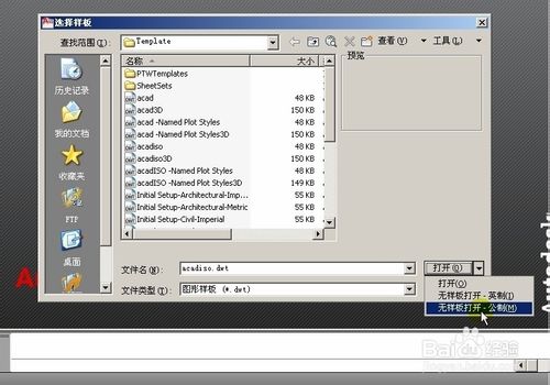 5、新建后,软件要求我们选择样板,一般情况下,选择右下角“打开”“无样板-公制”打开 公制,是我们国家使用的mm毫米为单位,如果使用“英制”则使用英寸作单位的