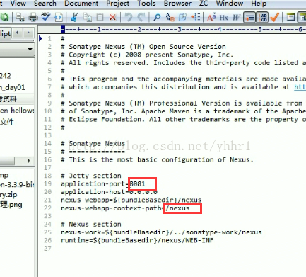 5.进入conf目录下面的nexus.properties查看端口和访问路径