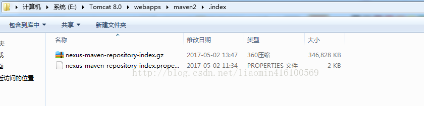 安装一个tomcat 在tomcat的webapps目录下 新建目录maven2 maven2下新建.index文件夹 将下载的index文件和properties文件拷贝到这个.index目录下