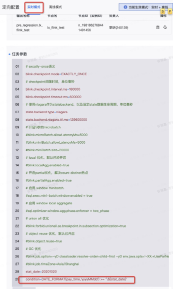 第二种是在Dataphin的任务配置实时和离线模式分别任务参数的方式是利用任务参数进行替换。
