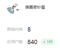 - 微信公众号「猿圈奇妙屋」从去年的40粉涨到了840个,正在迈出一小步。