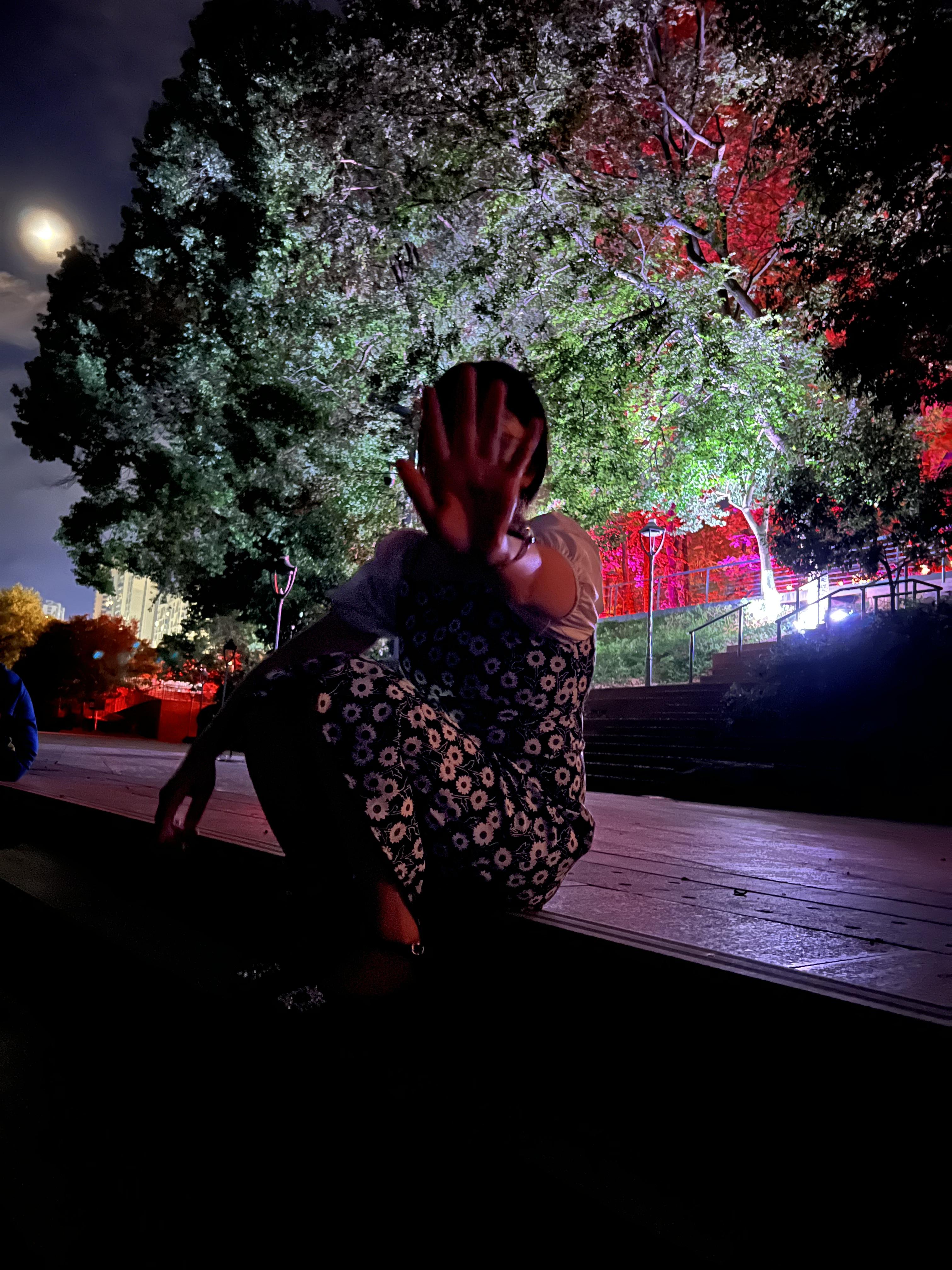 那晚,我们依偎着坐在河边,欣赏荷塘月色,那晚朦胧月色,她真的好美呀~可惜不让我拍脸儿????