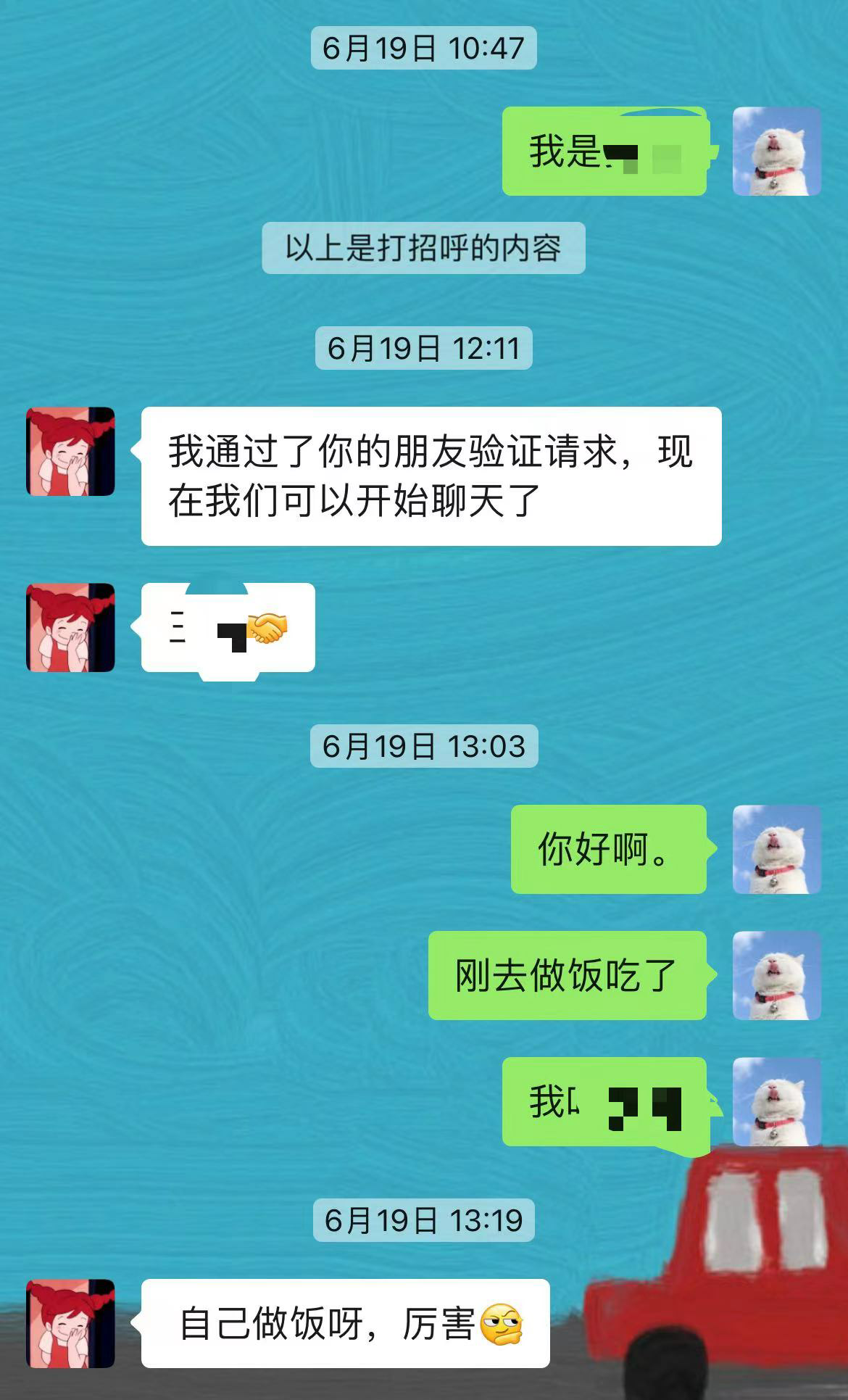 时间过去一月有余,推给我了一个女孩儿号码,让我先加个v聊聊看,于是乎,v是加上了,但聊?嘴上骂骂咧咧:"现在的女孩儿咋这么高冷啊一个个,早上的消息晚上回,晚上的消息隔天回,不知道的还以为我们隔着几条银河系呢。",于是我给家里抱怨道:"我算是看明白了,人家不想搭理我,要不算啦,强扭的瓜不甜","不碍事,我们再给你物色",间隔数日,四婶又给我推了个女孩儿,结果落了个直男名讳,心里挺失落的,成吨暴击。