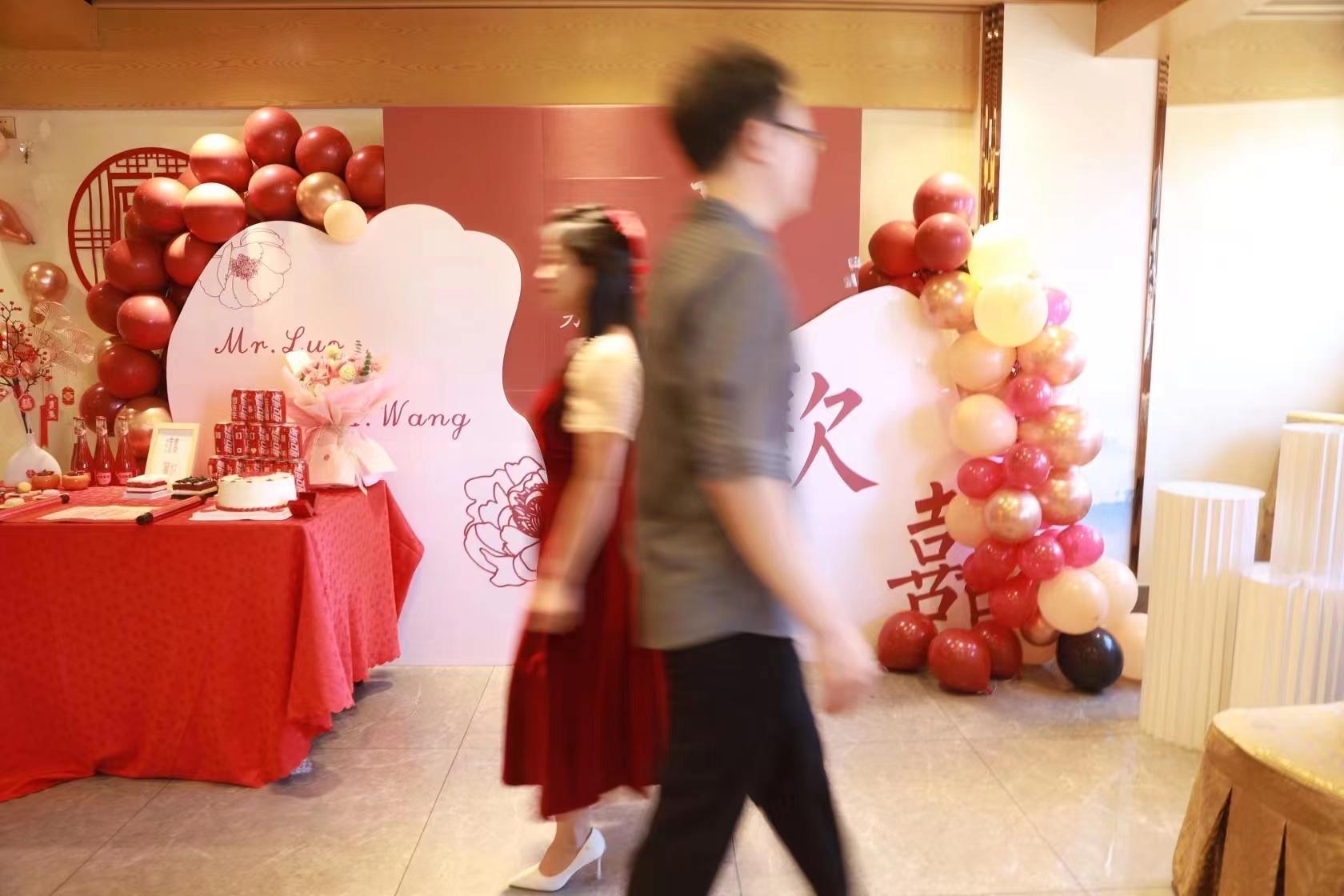 4号当天,一早,范总跟我的小伙伴准点出现在了酒店门口。整场布置下来,最难也最耗时的就属打气球了,真是个体力活,我们那天手动打了两百来个气球呢,像这种场景若没气球肯定是没有灵魂的,有气球装扮瞬间氛围感拉满。