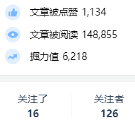 - 掘金「bug菌」从粉丝个位数做到了126(掘友不太地道哈,光白嫖知识不给点关注~差评)