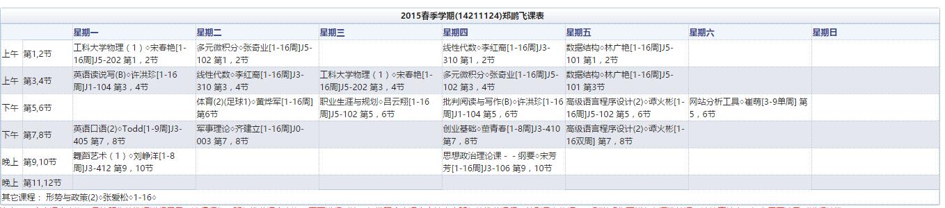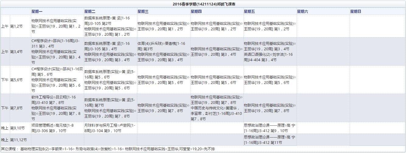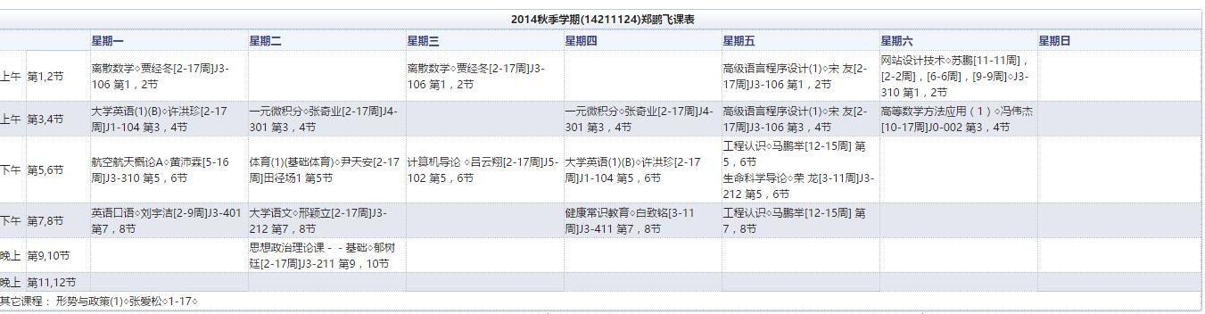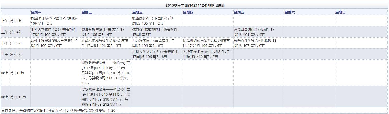 大二上的课表明显更比之前轻松了些,大二上课表: