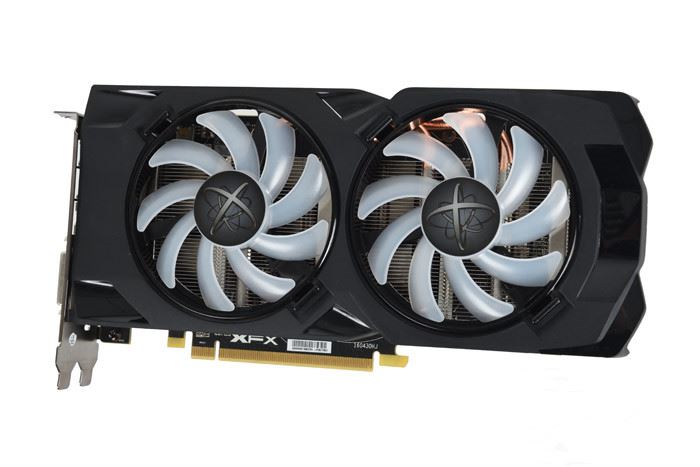 视频输出接口包括三个DP接口、一个HDMI接口和一个DVI-D接口,挡板依旧那么有XFX风格