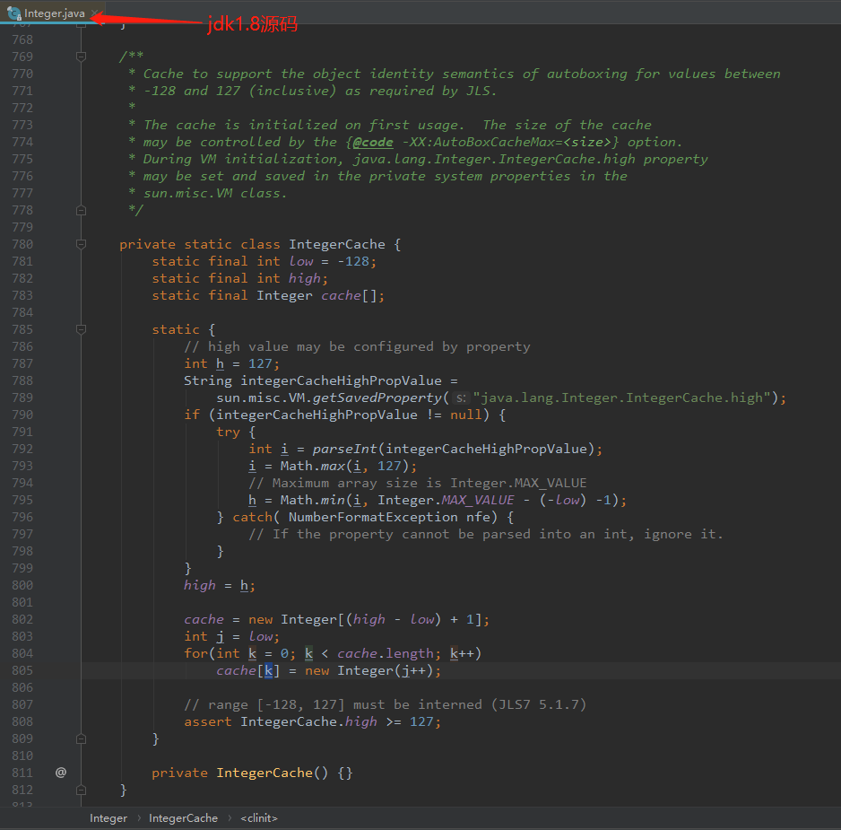 原因在于Integer类中有一个静态内部类IngeterCache,里面定义了一个Integer[],虚拟机初始化Integer类时默认从-128到127的Integer类型的对象都初始化到这个数组里了,只要是在-128到127的Integer类型的对象都是从这个数组中获取的,所以用“==”判断是true,超出这个范围会重新new一个Integer类型的对象,用“==”判断是false。