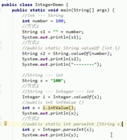 * 另外,Integer提供了多个与整数相关的操作方法,例如,将一个字符串转换成整数,Integer中还定义了表示整数的最大值和最小值的常量。