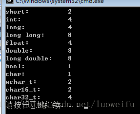 cout << "wchar_t:t" << sizeof(wchar_t) << endl;