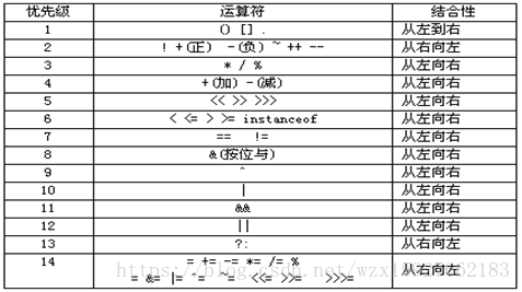 运算符优先级: